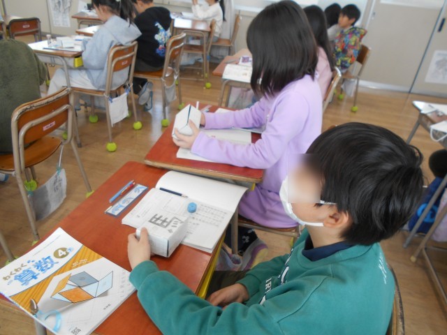 辺の数や面の形を実際に確かめながら学習していました。