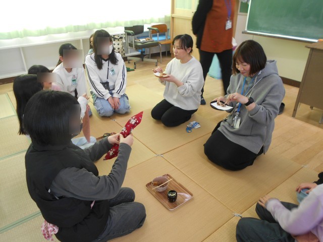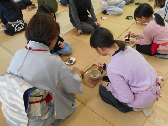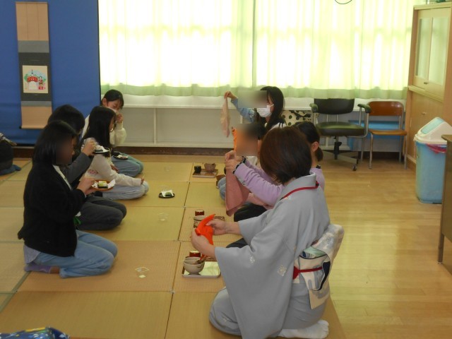 ゲストティーチャーの先生2名の方にいつもご指導いただいています。今日は、校長先生、図書の先生、保健の先生がお招きされ、子どもたちが張り切ってお茶をたててくれました。