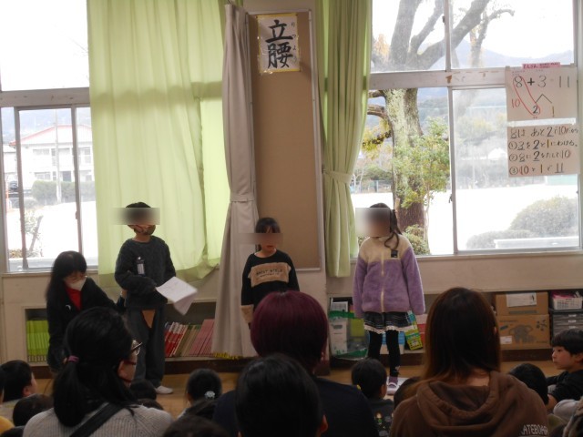 できるようになったことを発表しました。漢字を書いたり、計算したり、いろいろな発表がありました。