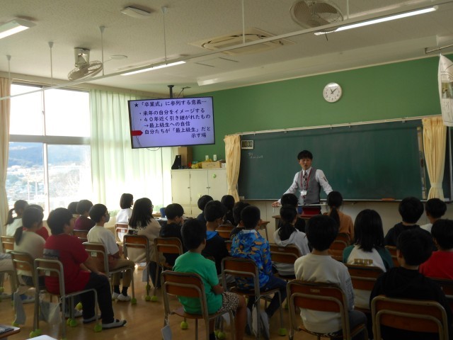 在校生代表として卒業式に参加する意義や態度について、話がありました。少しずつ最高学年としての自覚を高めてほしいです。