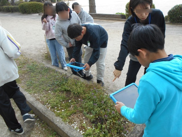 タブレットをもって、春を探しにレッツゴー!花や虫を見つけました。
