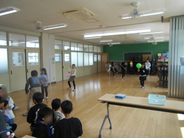 学級会で話し合ったお楽しみ会を実践しました。グループごとに、協力してリレーをしたり、クイズや計算を解いたりしてとても盛り上がって楽しそうでした。