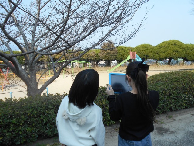 理科で春を見つけて、写真に収めていました。草花や桜のつぼみに春を感じていました。