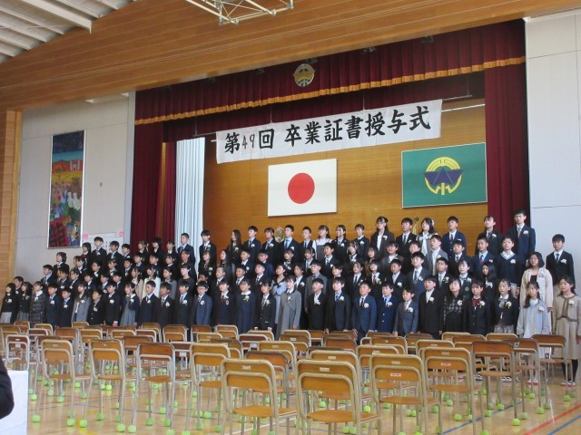 春のやわらかな日差しの中、第49回平野小学校卒業式を挙行しました。たくさんの思い出を胸に、111名の子どもたちが巣立っていきました。これまで、地域の方に見守られて安心して登下校できたことに、心より感謝申し上げます。ありがとうございました。