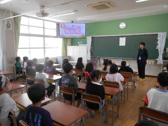 新しい教室で、学級開きがありました。担任から一年間の抱負や自己紹介をしました。新しい先生、新しい友達にワクワクドキドキしている子どもたちの表情が見られました。