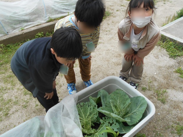 キャベツについている青虫を見つけたり、ちょうちょを追いかけたりといろいろな春を見つけることができました。自然に恵まれているなと感じます。