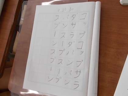 文章の中からかたかなを見つけて,印をつけたり,ノートに書き写したりしています。かたかなの文字も,とっても上手に書けています。