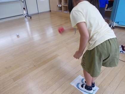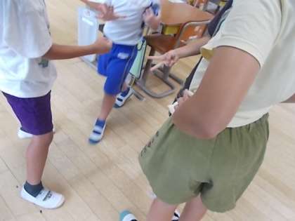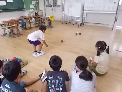 パラリンピックの正式種目でもある「ボッチャ」をしています。ゲームを通して,仲良くすることや,ルールや順番を守ることなど,たくさんのことを学んでいます。