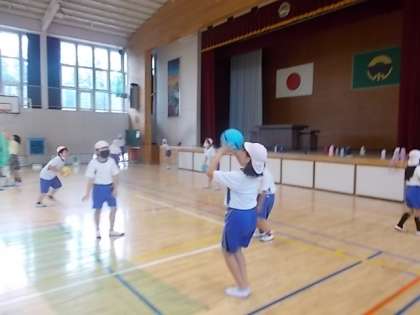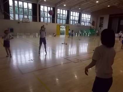 5年生も,ソフトバレーボールの学習に取り組んでいます。1回バウンドしてのパスもOKですが,それでもパスがなかなかつながりません。