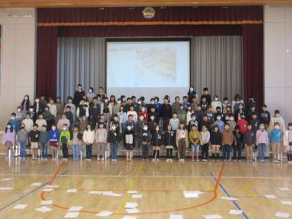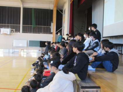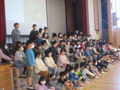 今日も,体育館で,ふれあいフェスタの練習です。それぞれの言葉(セリフ)を,順番に言っています。体育館に響くように,大きな声で頑張っています。