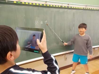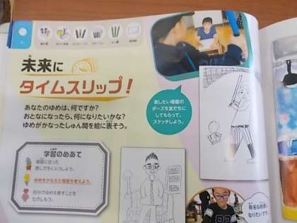 3年生の図工科では「未来にタイムスリップ」という学習をしています。自分の将来を予想して、その様子を写真に撮り、それを絵に表します。今日は、自分のなりたい職業を考え、友達にその様子を写真に撮ってもらいました。「お花屋さん」「先生」・・・。思い思いの未来を描きます。楽しみです。