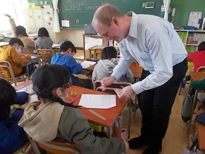 4年生の外国語では「アルファベット」を書く学習をしました。ALTのスティーブン先生と一緒に、大文字や小文字の練習です。さて、上手にかけたでしょうか?