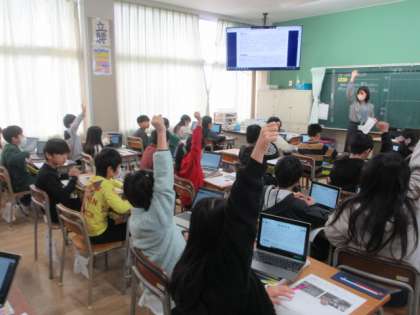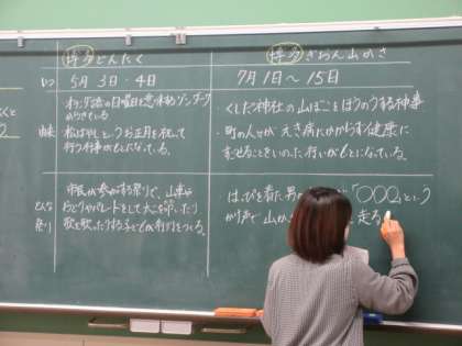 博多どんたく,博多祇園山笠は,福岡を代表する有名な祭りです。それぞれの祭りの由来や内容について調べています。ちなみに,どちらの祭りも,見たり参加したりしたことがあるのは,クラスで4〜5人程度です。