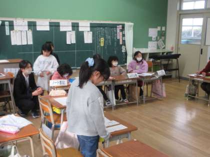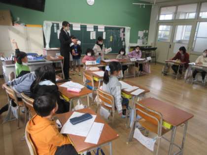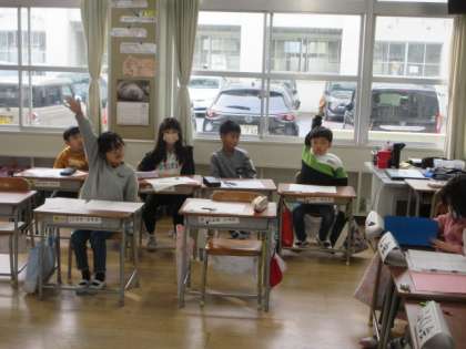 二学期のお楽しみ会の遊びを何にするか,学級会で話し合っています。たからさがし・ばくだんゲーム・細長切りゲーム・でんごんゲームの4つの遊びの中から,「みんなが楽しめるか。」「みんながもっと仲良くなれるか。」というめあてにそって,話し合っています。