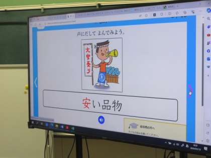 次々と画面に映し出される文章を,声に出して読んでいきます。正解すると,花丸がでます。漢字の読みを,しっかり身に付けさせていきます。