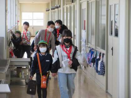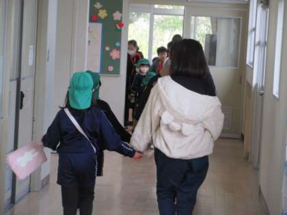 5年生は,新1年生の手を引いて,学校案内をしました。