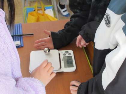 同じ体積の,アルミニウム・鉄・プラスチック・木では,ものの重さはどのように違うかを,実験で調べています。はかりだけでなく,手でもって比べることも,一つの方法です。