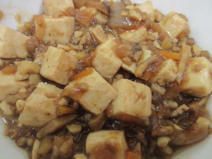 「小さな豆には栄養いっぱい!!」 今日のマーボー豆腐には,小さくきざんだ大豆や,大豆から作られている豆腐が入っています。大豆は,たんぱく質を豊富に含んでおり,「畑の肉」とも呼ばれます。他にも,ビタミンやミネラルも豊富です。