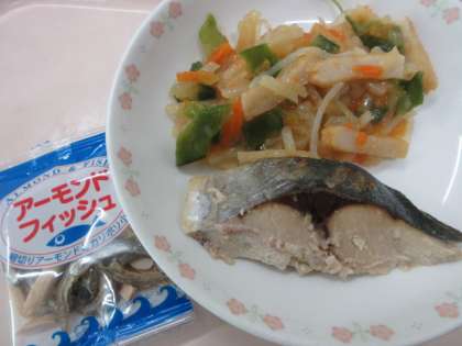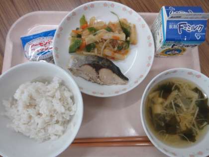 今日の献立は,あじの塩こうじ味噌焼き・じゃがいものきんぴら・お吸い物・アーモンドフィッシュ・麦ごはん・牛乳です。