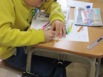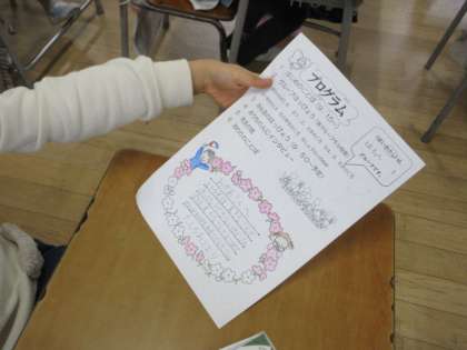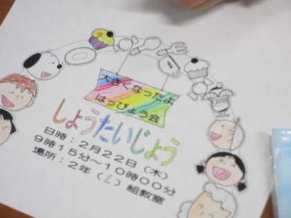 2月22日の参観日で,2年生は「大きくなったよ はっぴょう会」を計画しています。お家の人への招待状を書いていました。
