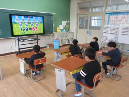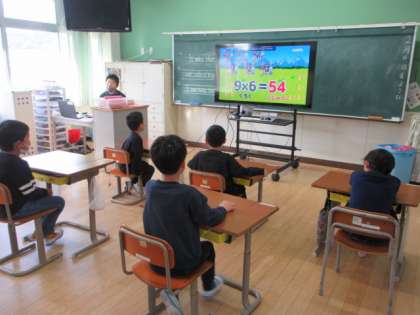 朝の活動で,九九の暗唱に,繰り返し取り組んでいます。九九暗唱の後は,楽しい物語の動画の視聴です。