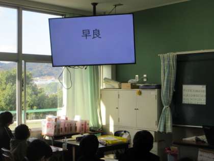 「馬出」と書いて「まいだし」,「百道」と書いて「ももち」,「早良」と書いて「さわら」,「雑餉隈」と書いて「ざっしょのくま」。身の回りにある日本語の表記について学んでいます。