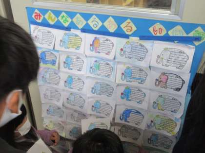 3年生の教室の入口には,「みんな あるある いいところ」の掲示物がはられています。友だちのいいところを見つけては,はり重ねています。