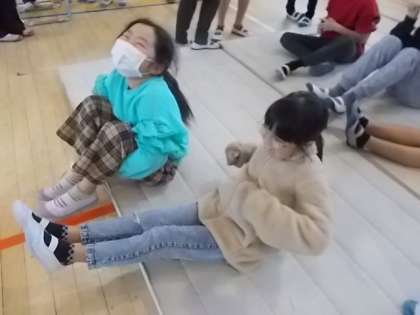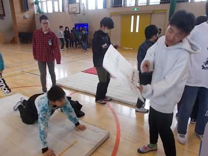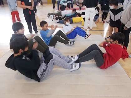 最後に、「マットを使った運動コーナー」です。腕立てや腹筋に繋がる動きを行い、運動の楽しさを伝えていました。どの委員会も工夫を凝らした出し物を行い、参加した子どもたちも大喜びで参加していました。今回のフェスタを通して、運動に興味を持ち、自分自身の健康に目を向けるよい機会になったのではないでしょうか?