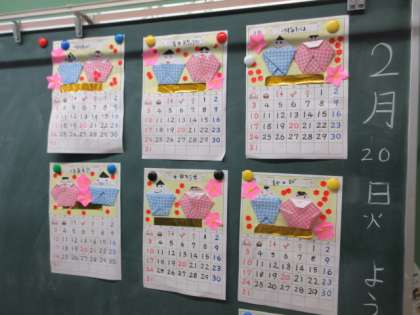 わかくさ学級の教室に,はやくも3月のカレンダーが飾ってあります。