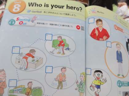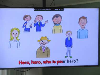 自分にとってのヒーローを,英語で伝え合う外国語の学習です。