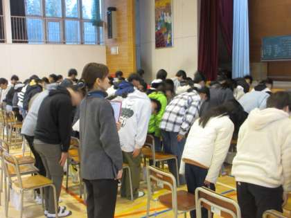 体育館での卒業式の練習が,いよいよ始まりました。まずは,姿勢や礼,起立,着席など,基本的な動きの練習からです。自分たちで,素晴らしい卒業式を創り上げてほしいです。