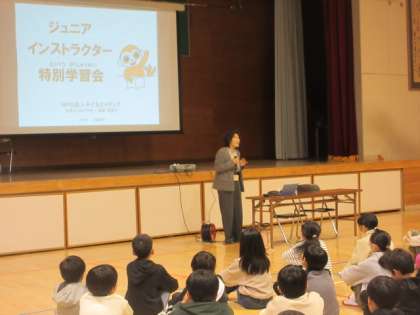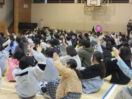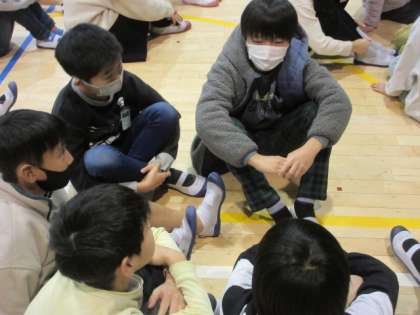 5年生は、情報教育を体育館で行いました。講師に、「子どもとメディア」から岩崎様をお招きしました。クイズやグループでの話し合いなど交流を通した学びを行いました。