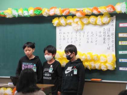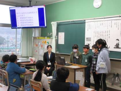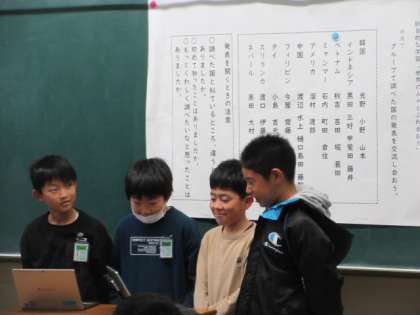4年生は、これまで学習してきた世界の国々の様子を、グループ毎に発表していきました。