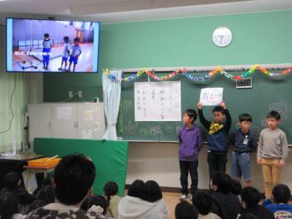 3年生は、これまで学んできた学習の成果を、教科毎にグループで発表していきました。
