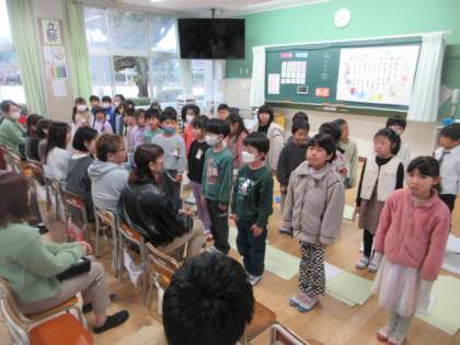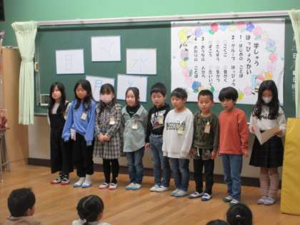 1年生は、1年間の学習の成果を各教科ずつグループで発表していきました。歌を歌ったり、保護者の皆様にインタビューしたりと工夫されていました。