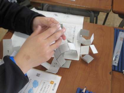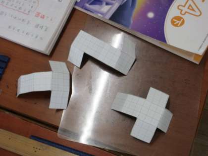 同じ立方体を作るとしても,その展開図は,何通りもあります。いろいろな展開図を書いて,立方体を組み立てています。