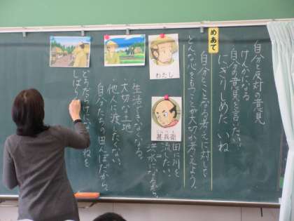 「にぎりしめた いね」のお話を読んで,「自分とことなる考えに対して,どんな心をもつことが大切か。」について学習しています。集団生活を送る上では,とても大切な心です。
