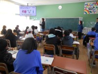 わかくさ学級の子どもたちの,今日の学習の様子です。大型提示装置やホワイトボードをよく見て,しっかり学習しています。