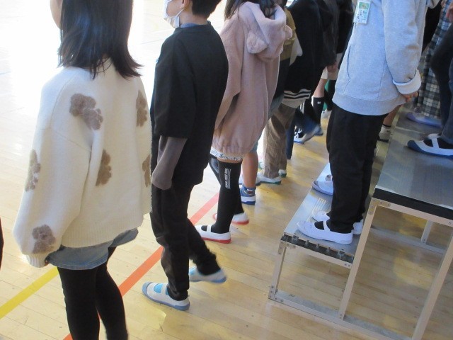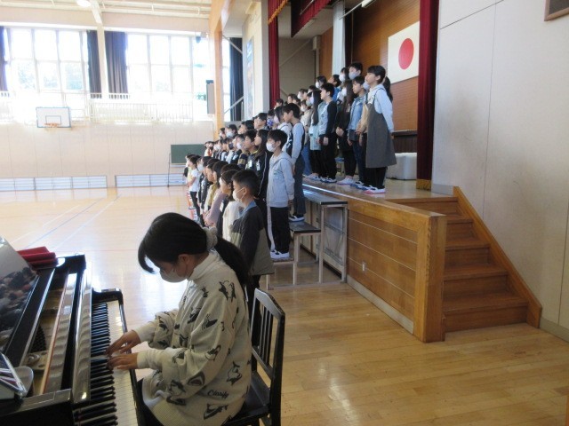体育館で,ひらのっこフェスタに向けた練習がはじまっています。手拍子や足拍子を取り入れた歌の練習を,頑張っています。