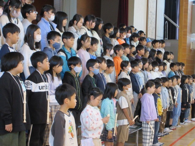 今日は,台本を持たずに,体育館での「ひらのっこフェスタ」の練習です。歌やリコーダー,劇,呼びかけなどを通して,「ふるさとの川」の素晴らしさを表現します。
