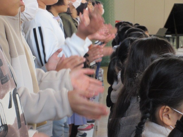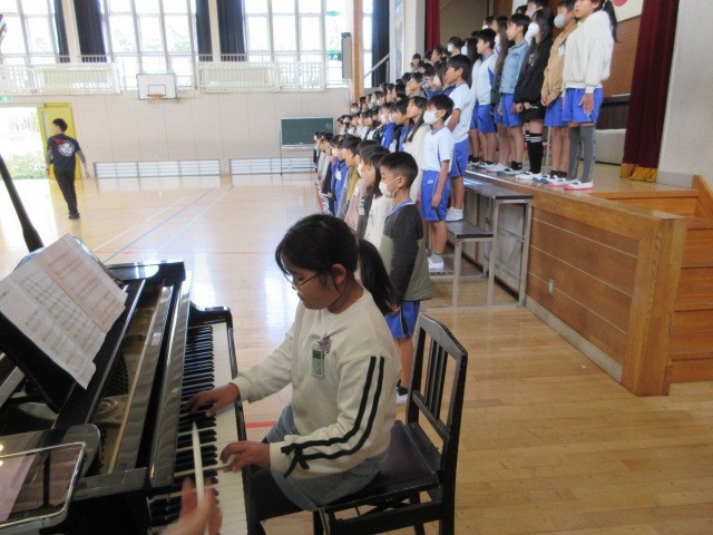 5年生の歌声が,体育館から聞こえてきます。手拍子,足拍子もそろってきました。