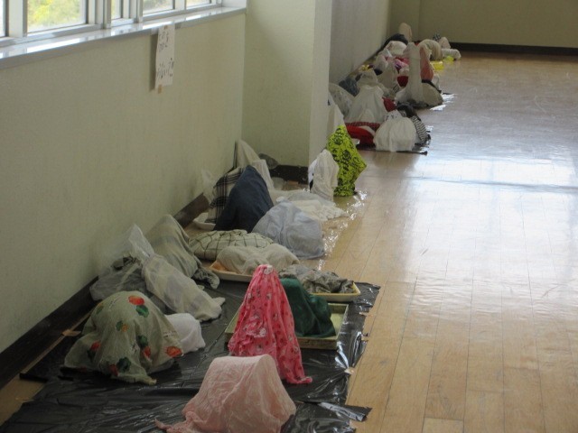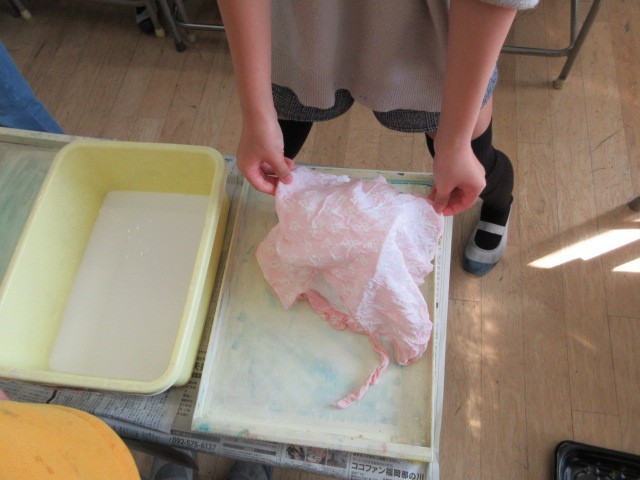 型をつくり,それに液体粘土をしみ込ませた布を張って制作する「どろどろカッチン」の学習です。3階の渡り廊下には,4年生の作品が,ずらりと並んでいます。
