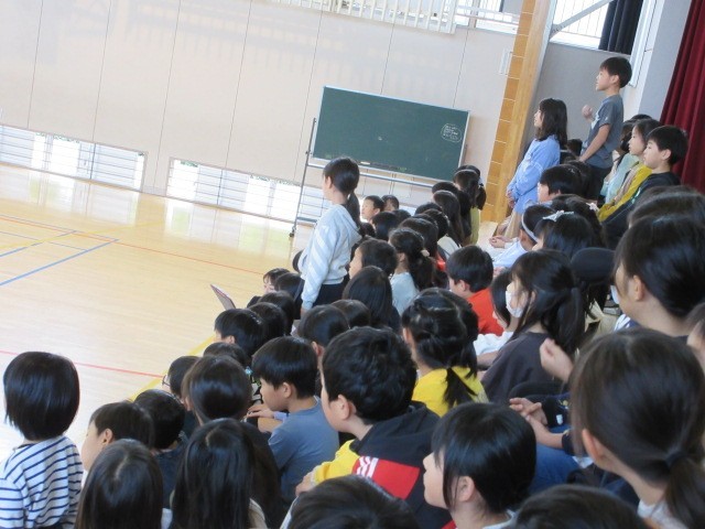 3年生の「ひらのっこフェスタ」の練習の様子です。手話や絵を使って,よびかけをしています。大きな動きで,伝わる工夫をしています。