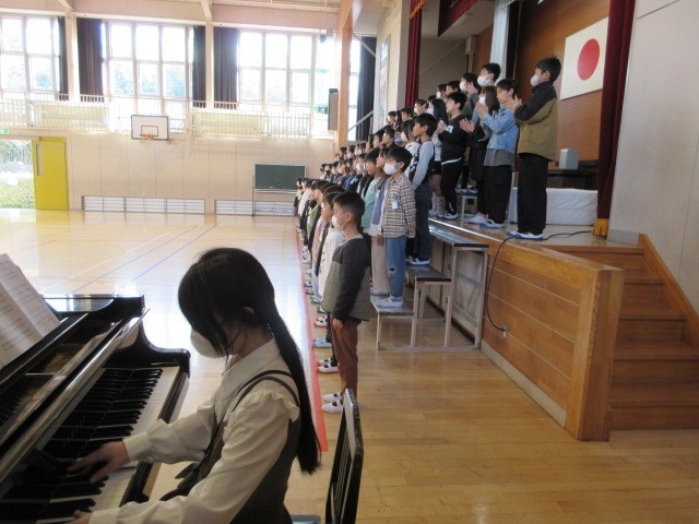 ひらのっこフェスタまで,あと一週間となりました。今日も,各学年が交代で,体育館で練習が行われています。5年生の練習の様子です。