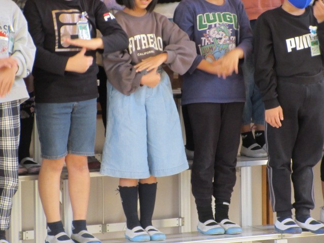 耳の不自由な方,目の不自由な方などの話を聞いて,分かったこと,感じたこと,学んだことなどを,言葉と手話でつないでいきます。手話をしながらの合唱に,心が打たれます。