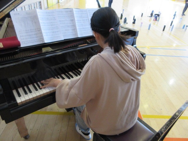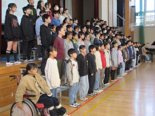 朝,一番に「ひらのっこフェスタ」の練習をしているのは,6年生です。「HEIWAの鐘」のきれいな歌声が,体育館に響いています。