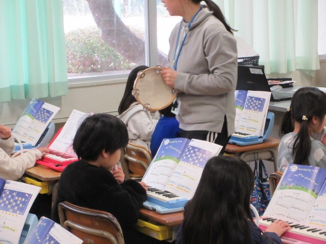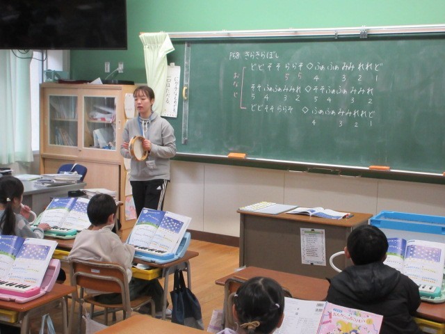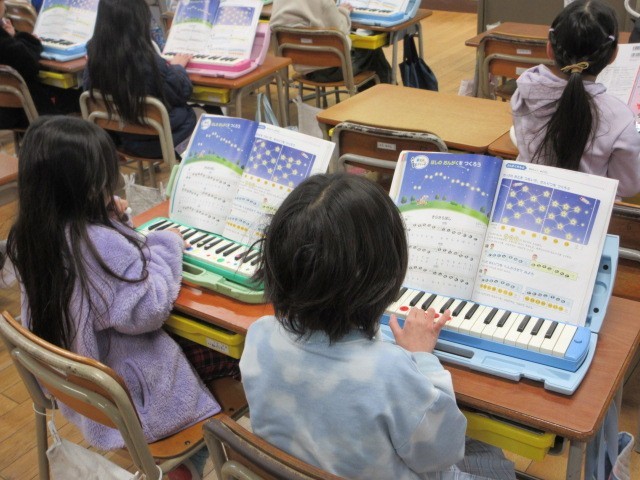 「ほしのおんがくをつくろう」の学習で,「きらきら星」をけん盤ハーモニカで演奏しています。はじめてにしては,とっても上手に演奏しています。