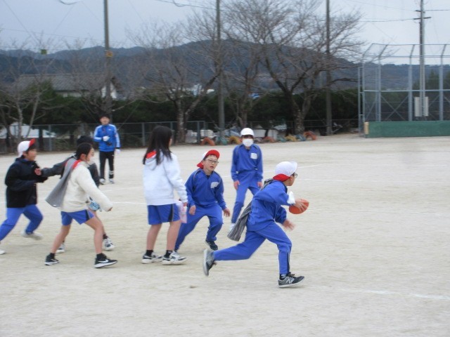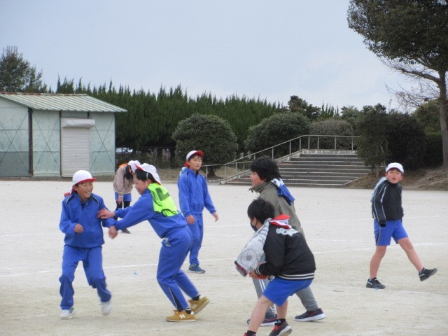 舞っていた雪も,午後は止みました。5年生が,「フラッグフットボール」の試合に取り組んでいます。ルールにも慣れ,作戦を立ててのぞんでいます。