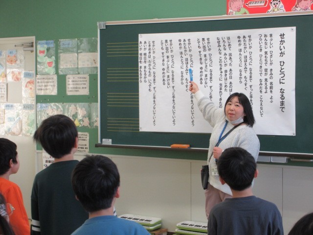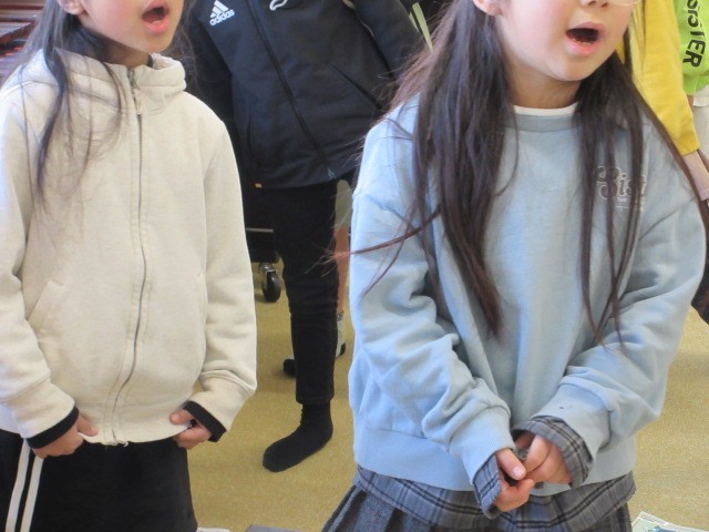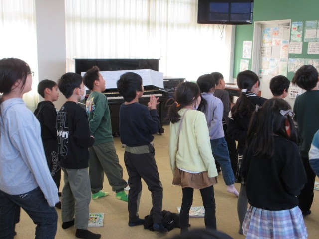 音楽室から,2年生の元気な歌声がします。口を大きく開け,体を揺らして,楽しそうに歌っています。