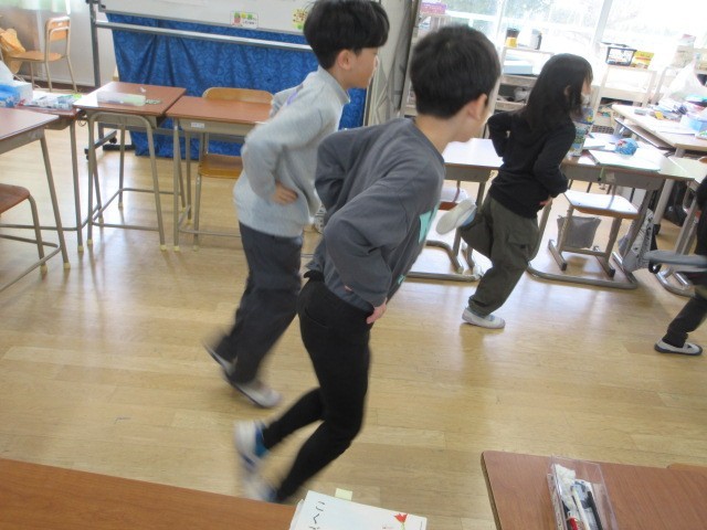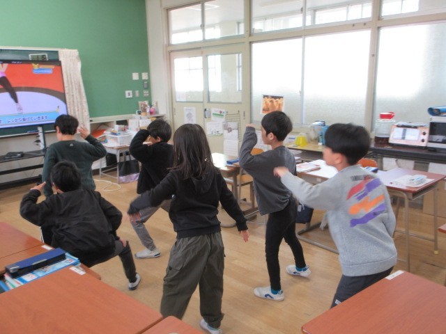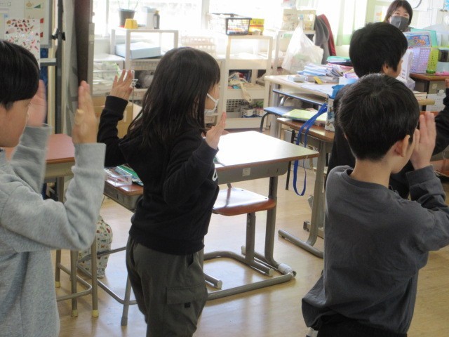わかくさ学級の2年生が,楽しそうに「ポケモンたいそう」を行っています。ストレッチ効果もある体操です。